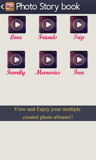 Create amazing photo Story Book with your photos, music and animation. Add photos you want to the slideshow and add your favourite music to the slides. Arrange the photos in order with the perfect background music and animation to create a story of your own.