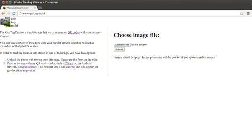- Upload the photo with the tag onto the app's webpage: www.geotag.mobi .