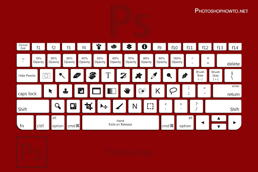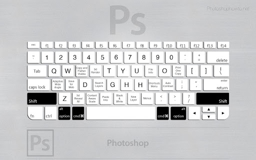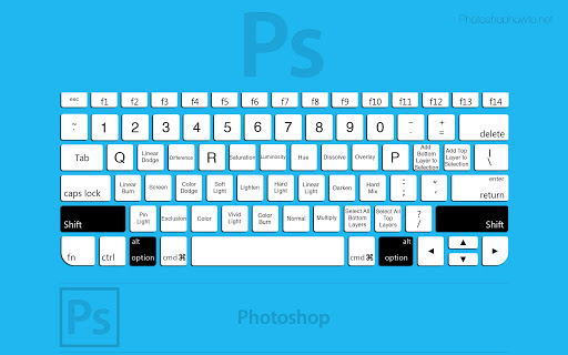Photoshop shortcuts diagram designed to improve workflow and efficiency in the photoshop software. All the shortcuts are current for Photoshop CC however, they will work just fine for most previous versions of the software. Shortcuts for when Command, Option, Shift are held or when the keyboard is in it's natural state. The photoshop shortcuts are available for download as a wallpaper.