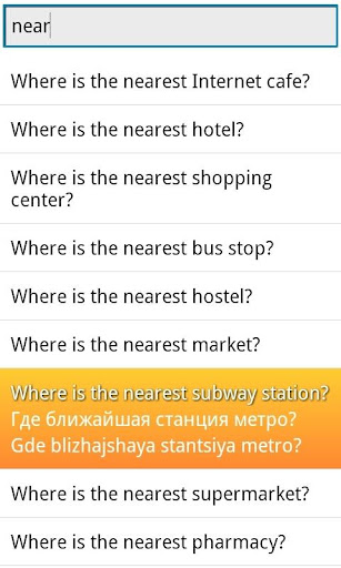 * Quick search of phrases by keywords. Input a part of word and the app will show you all phrases with this word in all forms.