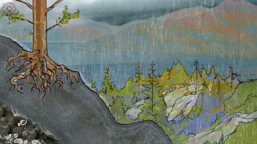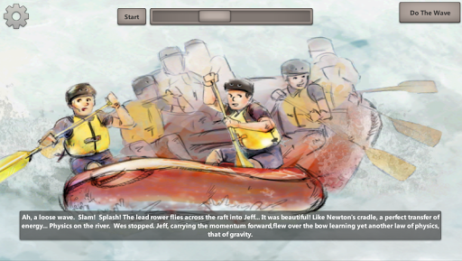 Story of a white water rafting trip that introduces science concept involving the hydrology cycle and the law of momentum.