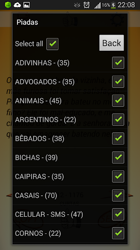O livro já recolheu mais de 1.000 dos melhores piadas sobre vários temas: frases engracadas, piadas curtas e engraçadas, celular SMS, piadas de loiras, piadas de preto, idiotas etc.