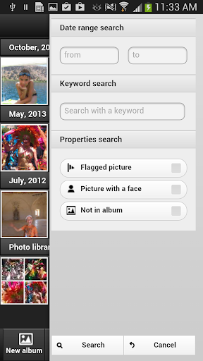 Find your pictures by multiple criteria as created date range, flagged, not included in album or free text
