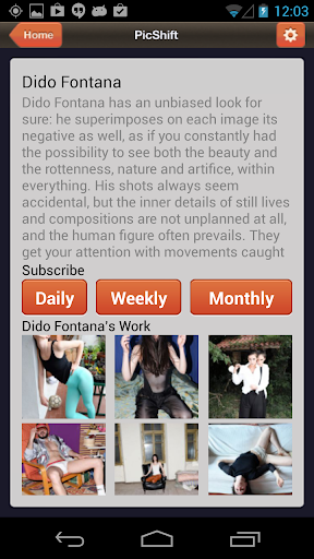 PicShift is the first Automatic Wallpaper App that shifts the wallpaper on your device daily, weekly or monthly based on your favorite subscribed photographers and artists.