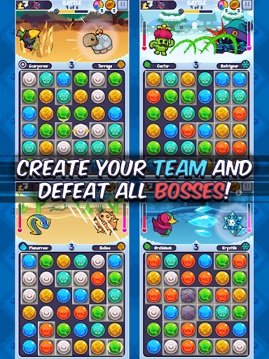 Build your team of monsters, break new grounds and fight your way to become the greatest monster tamer of all times in Pico Pets Puzzle. Swipe and match gems with strategy to battle enemies and lead your team to victory!
