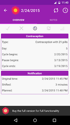 - Possibility to snooze the contraception in advance (displays in the calendar view- within the actual day or future days)