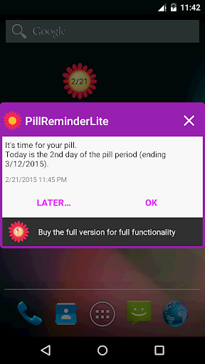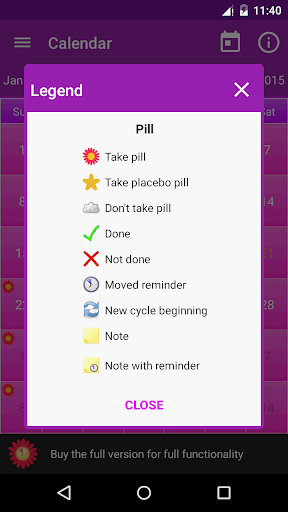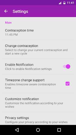 PillReminder Lite reminds you to take your contraception (pill/patch/ring) at the desired time every day, stopping reminders automatically on the pause period (contraception type specific) and rescheduling automatically when the next period starts. Plan ahead using the calendar view if you want to be reminded on certain days sooner or later to take the prevention or whether you want to skip the next pause period.