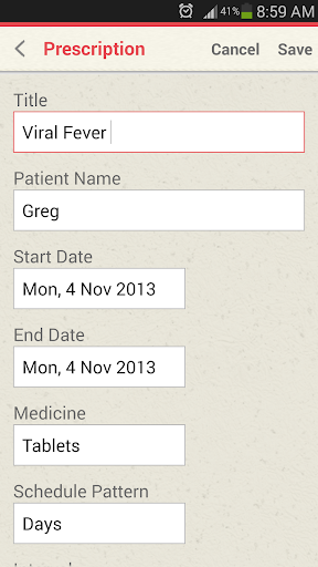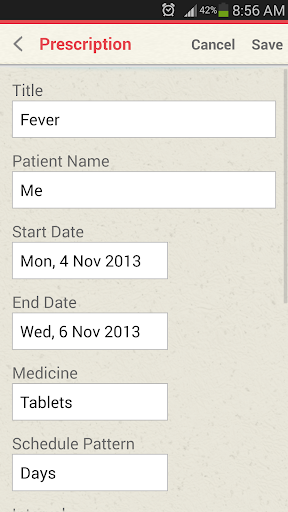 3. Prescriptions: Can set reminder at different times in a day.