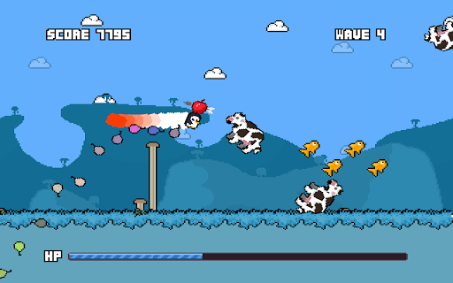 · Watch out for dead fish, twirling cows, supersonic sharks, missiles, ghosts, garden gnomes, gorillas, and freaky flamingos