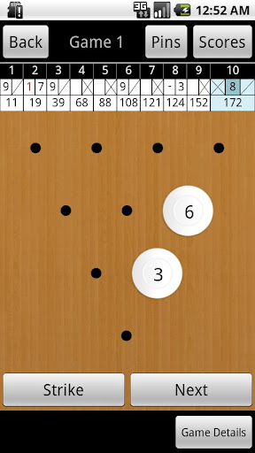 Scores can be entered either by selecting all the pins you knocked down or entering the scores you get for each ball. Also, if you don't want to take the time to enter each frame, you can just enter the final score for the game.