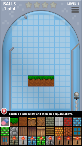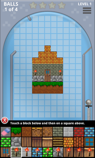 Pinball Block Breaker Craft is a mashup between pinball, breakout and minecraft. You create and play your own levels. There are 27 different blocks to build your levels with. Once you create a level you can play it to see if you can complete it.