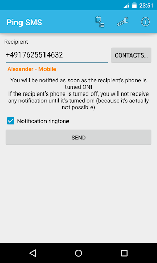 This application allows you to know whether a recipient's phone is turned on by sending a silent SMS also called ping SMS.