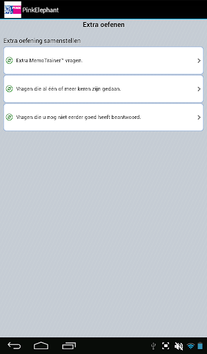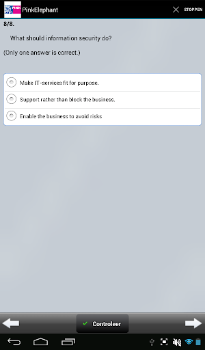 The Pink Elephant App offers training delegates the possibility to exercise with the course content from official Pink Elephant training materials. The App contains sample questions in preparation for the official examinations, and contains a wide array of topics, such as: ITIL, ISO 20K, PRINCE2 and ISO27000. The Pink Elephant App can be customized to personal preferences, determining with which frequency you want to practice with course topics.