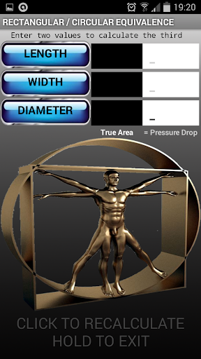 EQUIVALENCES: Calculates the equivalent diameter to a rectangular section and vice versa; this being possible, once obtained the diameter, modify the values entered in the rectangle.