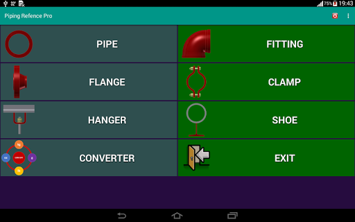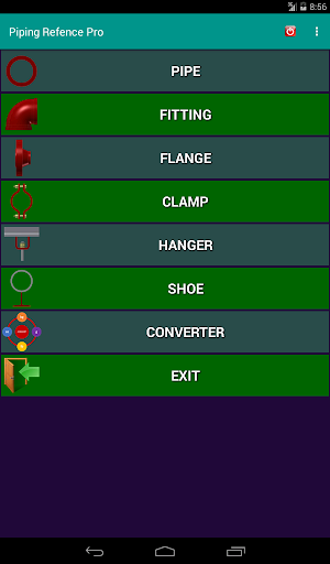 This application is dimension of piping and accessories. It has many accessories in the app such as pipe size, pipe clamp, fitting, flange and pipe hanger. This app have both metric and us unit. It will auto change unit when user select pipe standard NPS (in) or DN (mm).