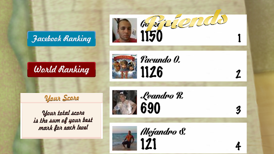 The more points you do, the more coins you get and the more levels you can play. The sum of your score in every level puts you in competition with your facebook friends and in the overall ranking.