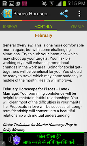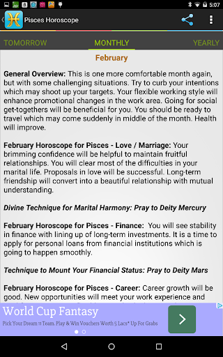 Our Pisces Horoscope Application is based on the planetary influences in life, which can help you to make strategic plans and tactical shifts so as to surf the energy waves in the most optimum way possible.