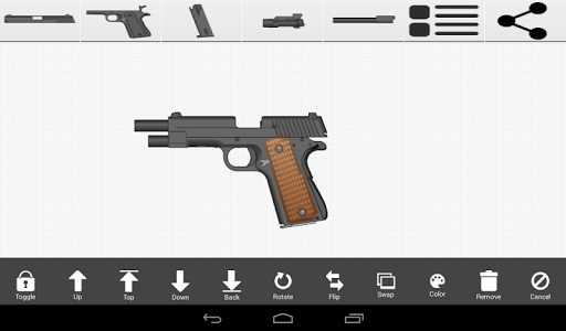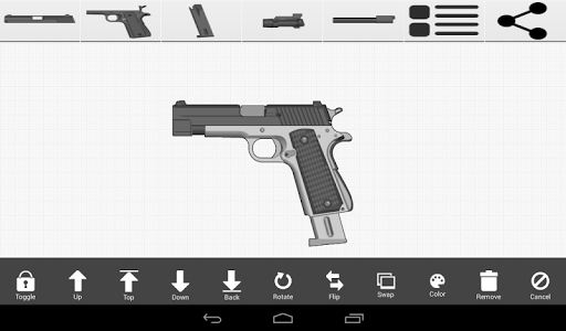 Pistol Builder PRO is a fun app that allows the user to use their creativity to build a custom handguns on their Android device and export them as a graphic to share.