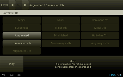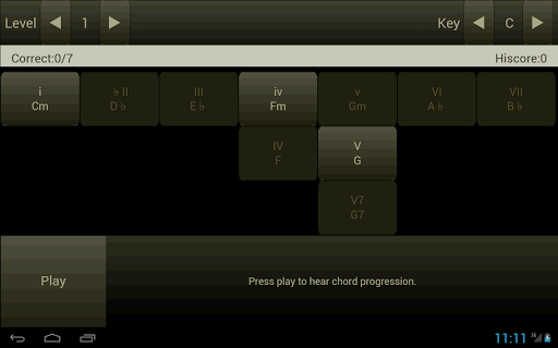 Ear training, ear trainer, play by ear, perfect pitch, absolute pitch, relative pitch, intervals recognition, melodic dictation, chord types, chord progressions, pitch improver, pitchimprover, aural skills, pitch training