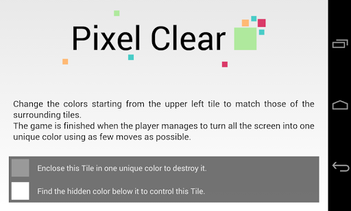 The game is finished when the player manages to turn all the screen into one unique color using as few moves as possible.