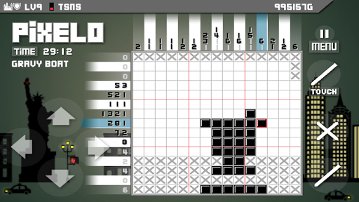 Pixelo is a simple logic puzzle game commonly known as Picross or Pic-a-Pix.