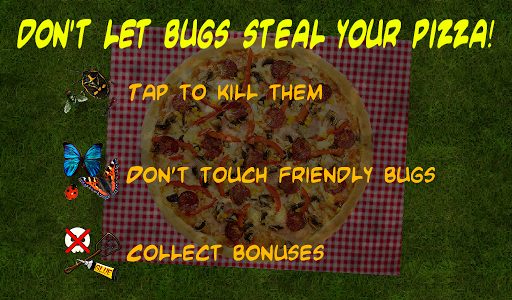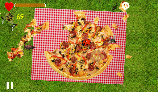 Defiende tu pizza de esos molestos bichos, pero ten cuidado con los pequeños que sólo pasan por ahí como mariposas y mariquitas. ¡No dejes que arruinen tu picnic!