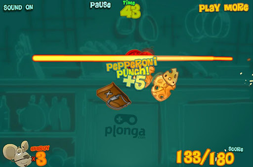 Help the mousy Italian chef to chop fresh ingredients for his famous pizzas! React fast, but be careful: not all ingredients are safe… Four stages, 48 levels, lots of fun and features. Cut any fresh food that appears on the screen to cook a delicious pizza. Upgrade your skills, flip a coin to grab your bonus and stay tuned with the traps that appear suddenly!