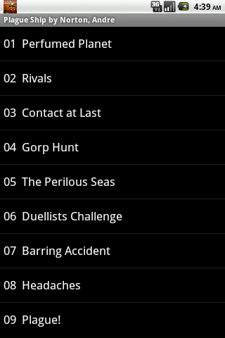 The Android App "Plague Ship Audio Book" is a full featured media player with: