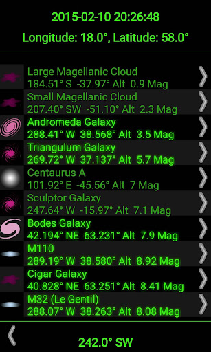 · Rise, transit and set times for planets, stars, galaxies and all other celestial types in astronomy compass