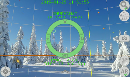 Planet Finder + comes with an advanced Augmented Reality Camera: Just point your phone to the sky and Planet Finder + will instantly switch to Augmented Reality Mode. Spot planets and stars through your mobile camera, take a snapshot and share via facebook, email, twitter or MMS!