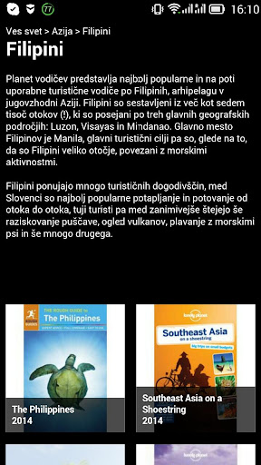 Aplikacija omogoča pregled in naročilo vodičev iz zbirk Lonely PLanet, Eyewitness Guide, Rough Guides, Berlitz, Insight Guides, Michelin, Bradt, Footprint in drugih. Turistični vodiči so urejeni po državah, tako da boste želeni vodič lahkoprimerjali še z vodiči drugih založb ali z bolj podrobnimi ali namenskimi vodiči.