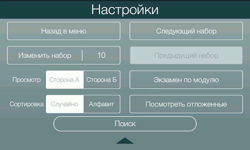 + выученные карточки можно помещать в «отложенное». отложенные карточки можно всегда просмотреть и вернуть обратно в набор.