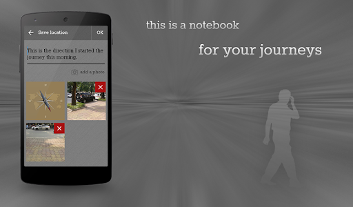 This is a compass app that shows you accurate (true north) directions. This is also a convenient notebook that helps you capture the directions, take photos and notes during your journeys, and share with the world. At anytime, this app will be a friend who tells you stories about your journeys through the notes you took.
