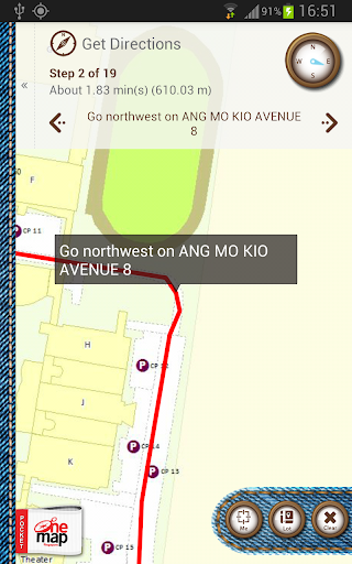 The Compass feature provides a convenient and useful way to find your current orientation. Simply tap on the compass image to rotate the map in the direction you're facing, guiding you to the correct direction of your destination.
