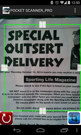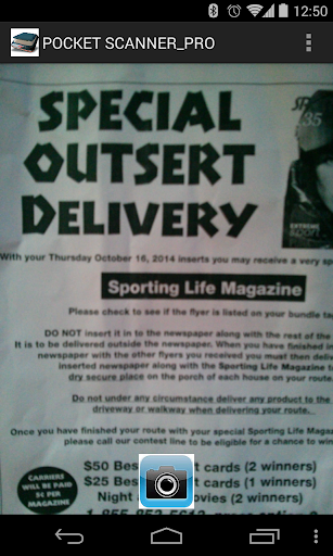 2.2. Take a picture of your document using back camera. You can take pictures in LANDSCAPE or PORTRAIT mode. Depend how you take pictures (landscape or portrait) will be save in PDF in the same page mode.