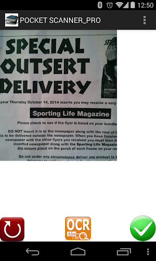 2.4.1 If you want to recognize the text in scanned image, press OCR button. App displays the recognized text in Edit window where you can edit it (for example check spelling, add/delete words etc). If you want to rescan, press Redo button. ( Hint: FOR GOOD RESULT YOUR PICTURE SHOULD BE CLEAR WITHOUT ANY MARKS AND SHADOWS).