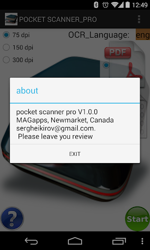 2.4.2. If you want to save scanned image as a picture, press Accept button. You should see PDF button. Press it to view scanned results.Then press Return button to return to app.