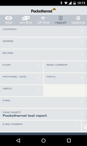 The app enables you to make measurements with the Pockethernet device, remote control every function and generate a report of your findings.