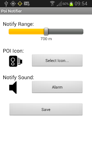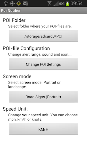 Poi Notifier notify nearby POIs. Download your favorite POI information from your default POI-file site and you never miss gas station or speed camera again.