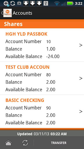 • Transfer funds to other suffixes and/or Point West accounts