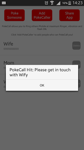 So he sends a PokeCall and Bang better half gets notified and calls back her husband immediately.