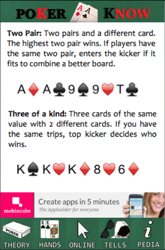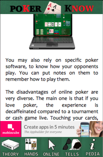 App creada por un jugador semi-profesional de poker, con beneficios tanto en vivo y online. Lector apasionado de libros de teoría y estrategia de poker, asiduo lector de revistas online del sector, organizador de eventos y torneos de NL Holdem, tele-espectador de todos los torneos en televisión y de internet. Todo el contenido de Poker Know es propio y pertenece a pauldreamapps.