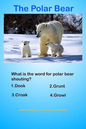 This is a simple educational app for a kid to learn about the animal Polar bear. Answers are given below in the form of audio under each questions.