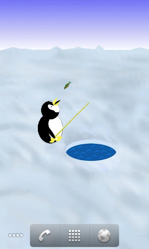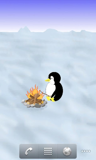Each phone screen gets a different scene for your pal. The home screen features an igloo he can hide in. Side screens include a frozen pond where your pal can go skating, and a snowy hill for him to sled on. If your phone features five or more screens, he can also toast marshmallows over a campfire and catch a fish in an ice fishing hole. Nom!