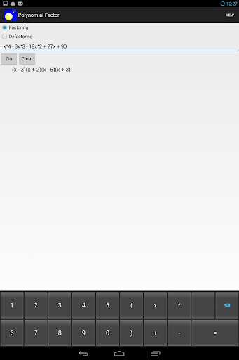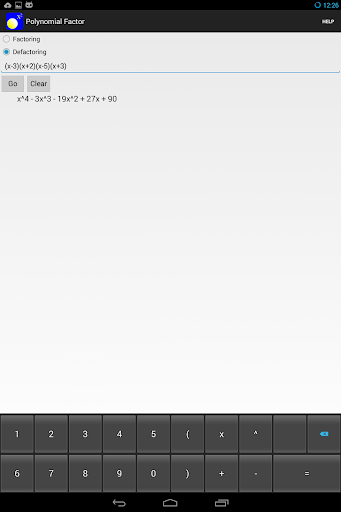 Polynomial Factor is a mathematical app that helps for both factorization (factoring a polynomial to factors) and defactorization (defactoring factors to a polynomial).