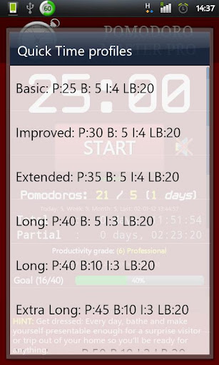 The application will calculate your productivity grade based on the partial counter and a 7 hours work day. The productivity grade is easier to get at lower values.