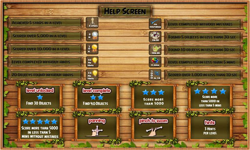 Each level features 10 distinct achievements to unlock (100 in total for the app), and 40 meticulously well-hidden objects to find (400 in total for the app).