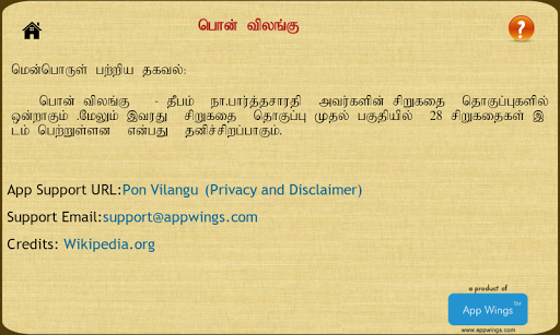 Ponvilangu - Written by Na. Parthasarathy (18 December 1932 - 13 December 1987).He was a writer of Tamil historical novels from Tamil Nadu, India. In 1971, he was awarded the Sahitya Akademi Award for Tamil for his novel Samudhaya Veedhi. He was also a journalist who worked in Kalki, Dina Mani Kadhir and later ran a magazine called Deepam. He was known as Deepam Parthasarathy due to his magazine. He also published under various pen names like Theeran, Aravindan, Manivannan, Ponmudi, Valavan, Kadalazhagan, Ilampooranan and Sengulam Veerasinga Kavirayar.