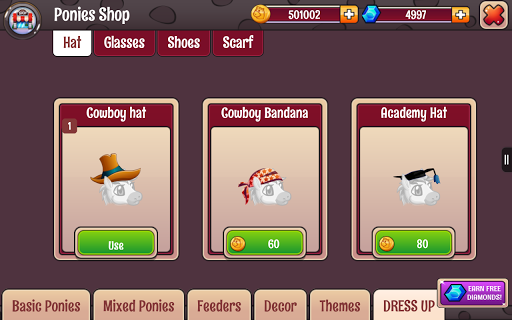 Dress up your ponies with rich collection of hats, scarfs, shoes and cool glasses.