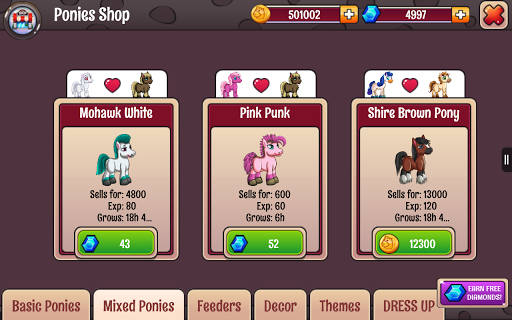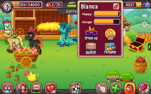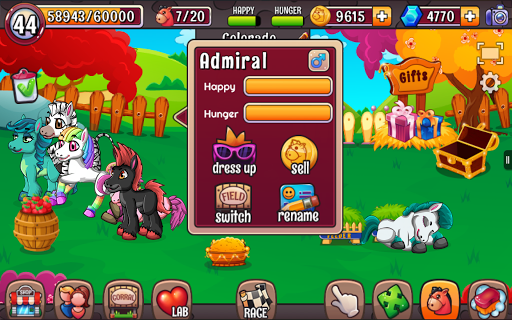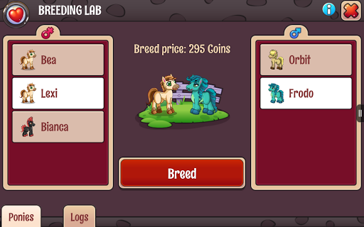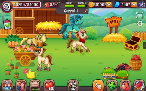 Discover magic world of Ponies. Take care of your cute pet ponies - feed them, play with them. Decorate corrals and create fun environment for your little ones. Mate different pony species and get new breeds. Breed Zebra, Unicorn and Rainbow Ponies.